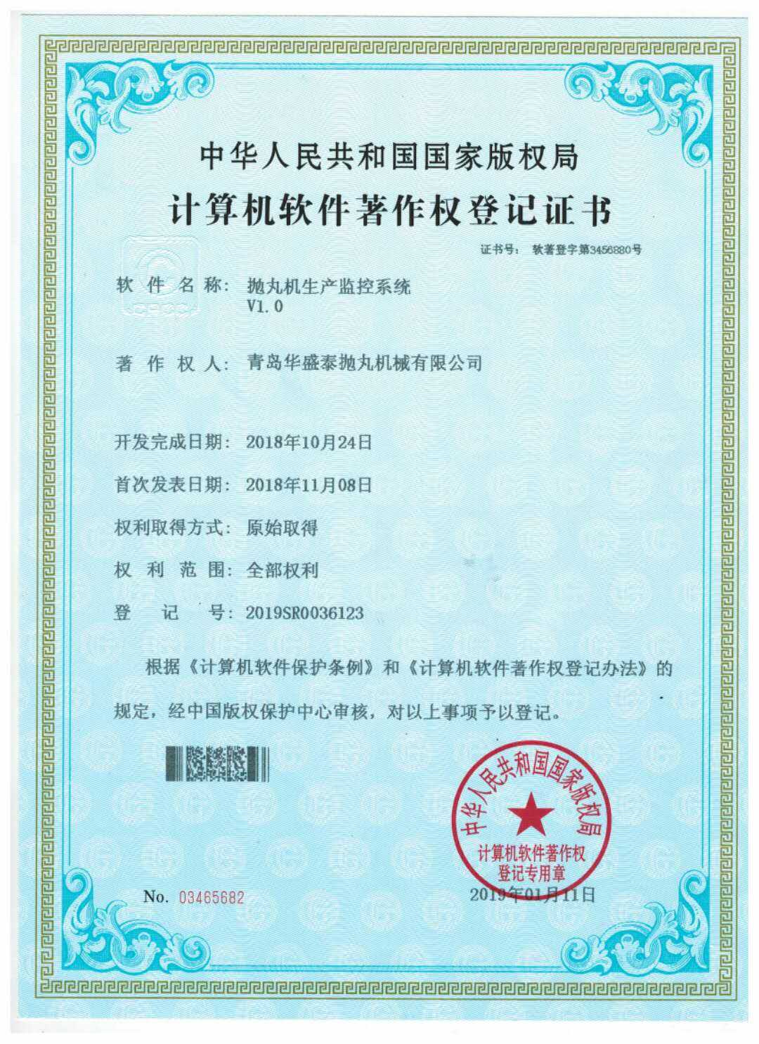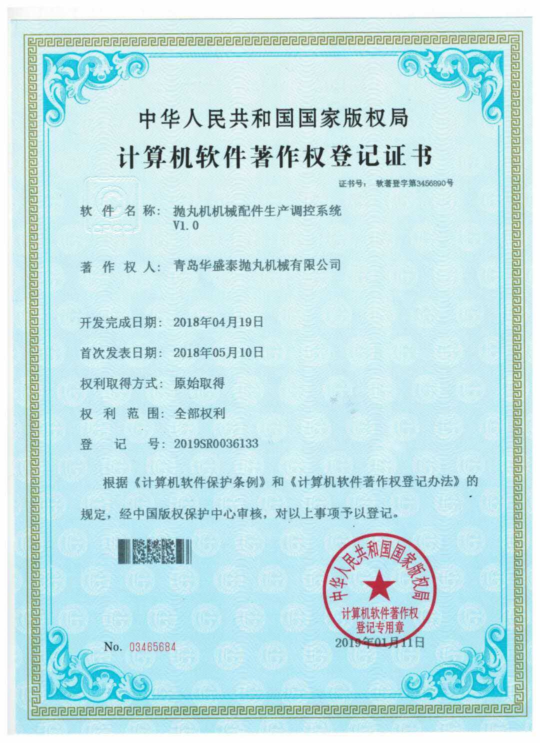 • 計算機(jī)軟件著作權(quán)登記證書