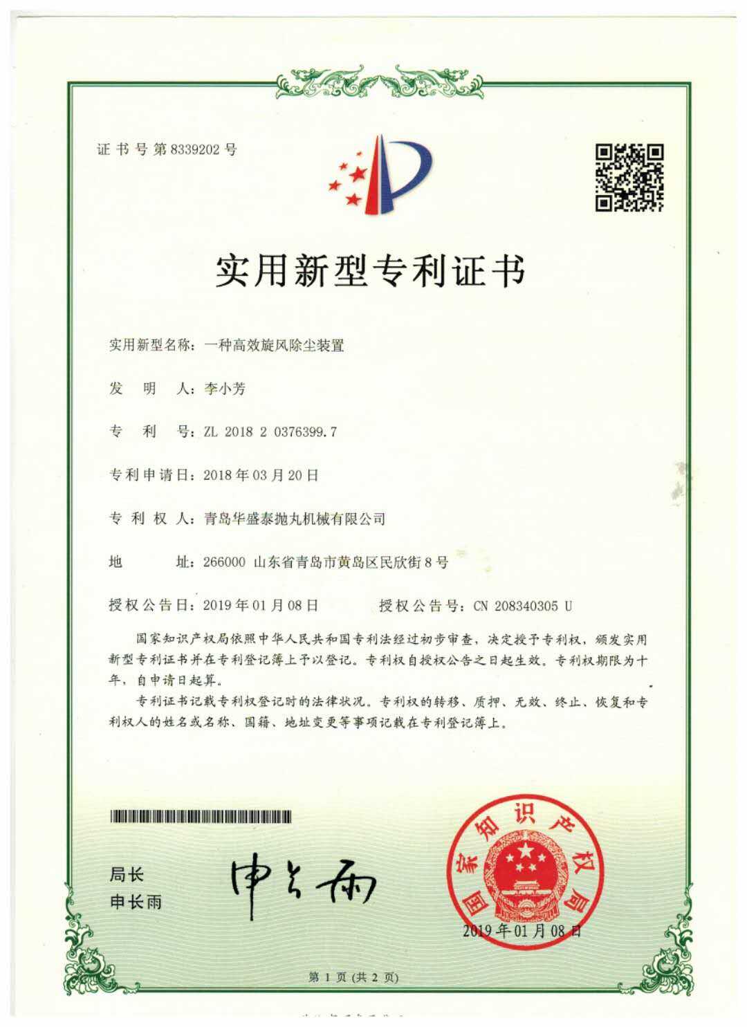 • 實(shí)用新型專利證書
